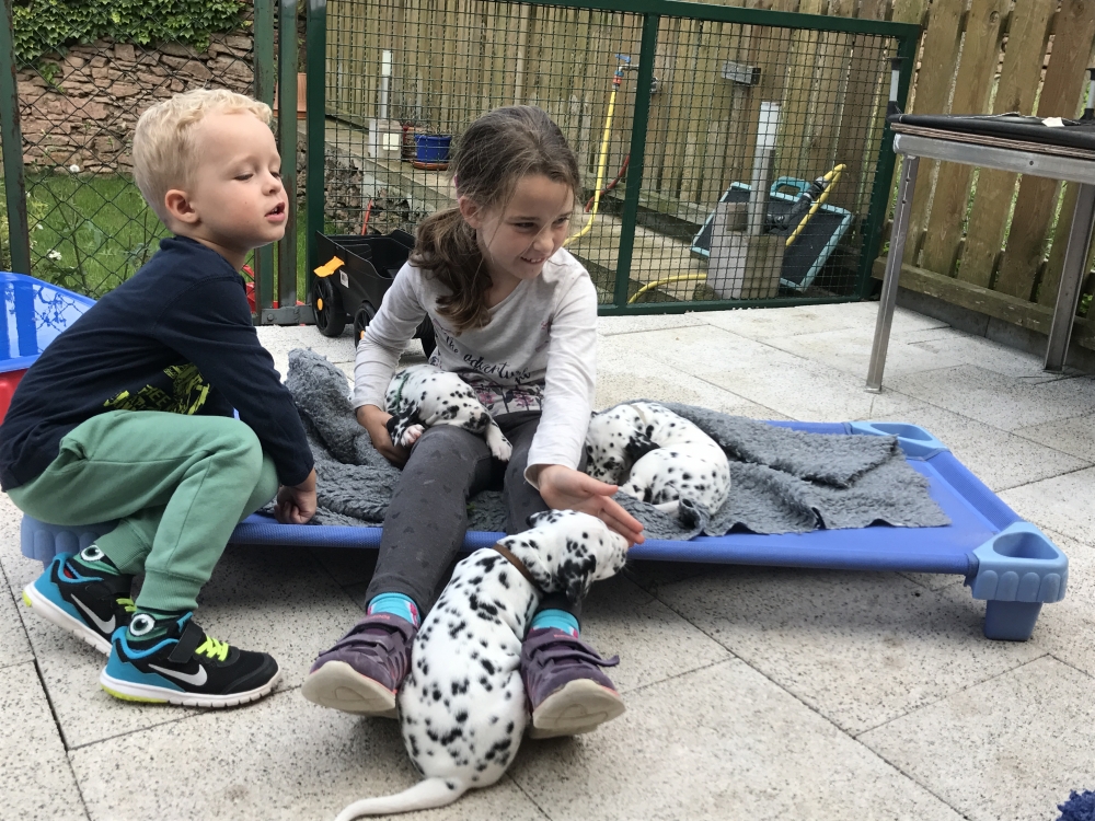 Jeden Tag kann man Veränderungen sehen, sie wurden immer sicherer im laufen, trinken und essen prima schon allein. Anfangs liefen sie mit Anlauf durch das Essen und rutschten auf dem Bauch hinein, jetzt steht mal nur noch ein Beinchen drin, wenn sie an den Happen vom Brüderchen oder Schwesterchen kommen wollen.