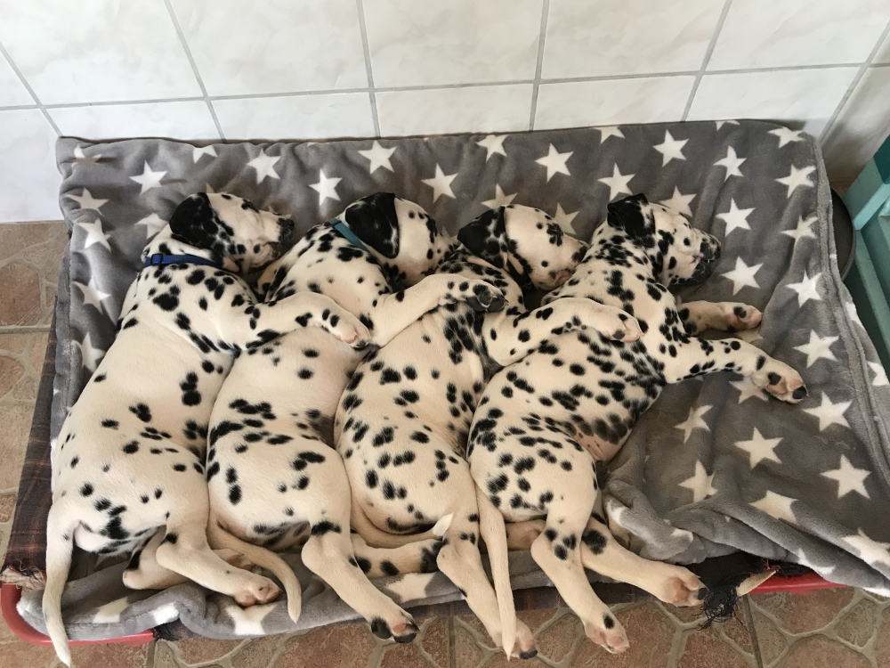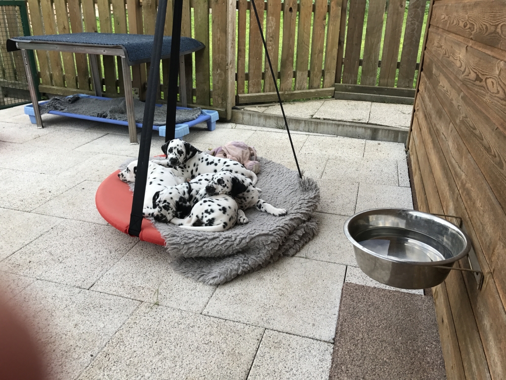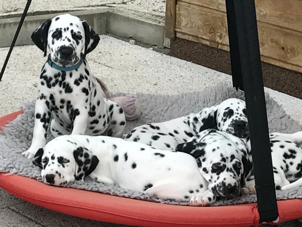 Aber auch die anderen Geschwister stehen ihr nicht nach. Jeder ist was Besonderes, der eine etwas fescher, der andere ein wenig ruhiger. Gemeinsam toben sie über die Wiese, schauen neugierig wenn wer zu Besuch kommt oder liegen zusammen alle auf den Liegen, schlafen oder schauen einfach zu, was wir oder die großen Hunde so machen.