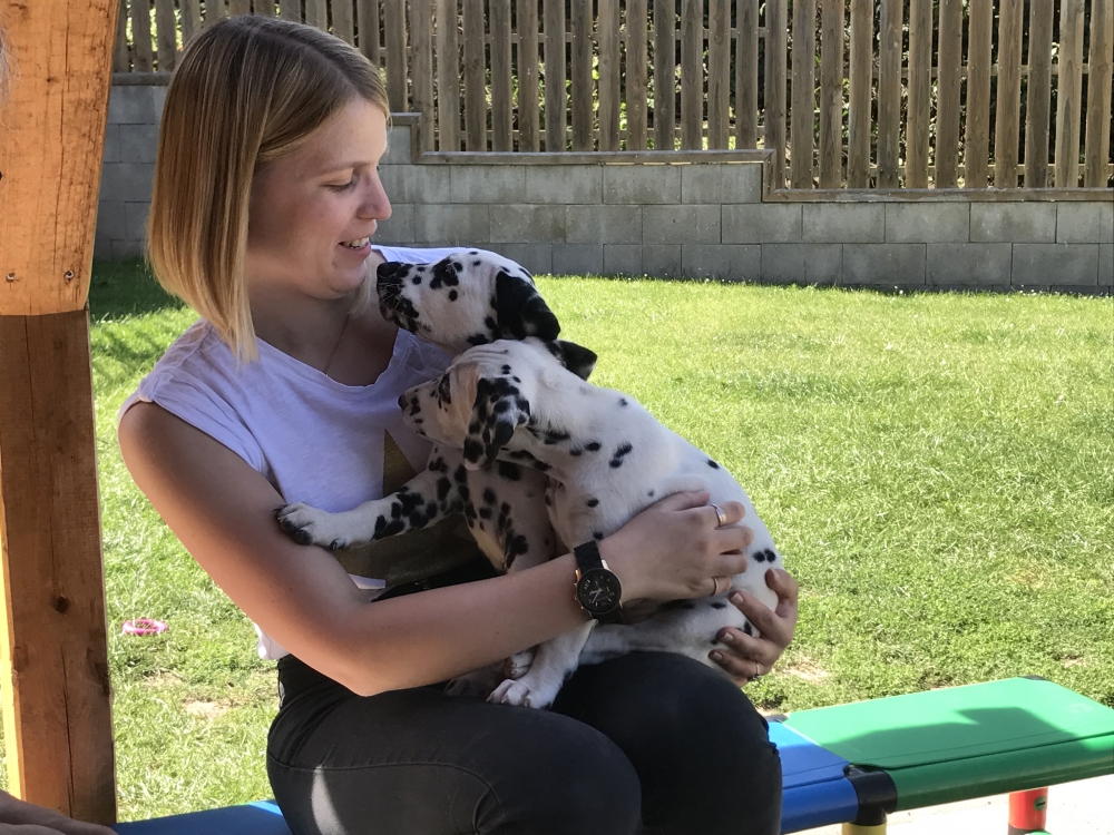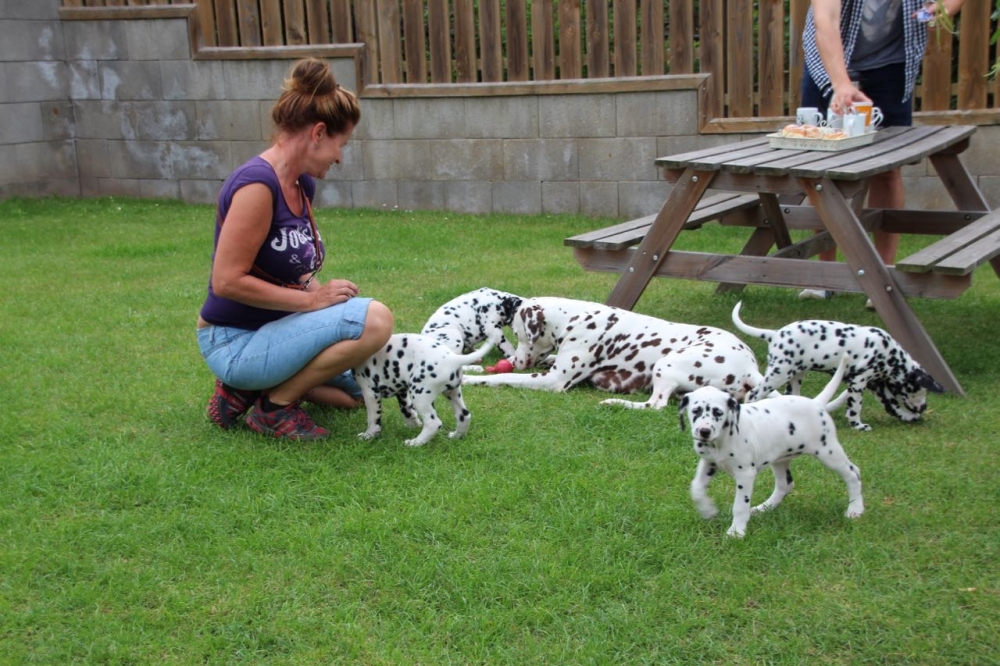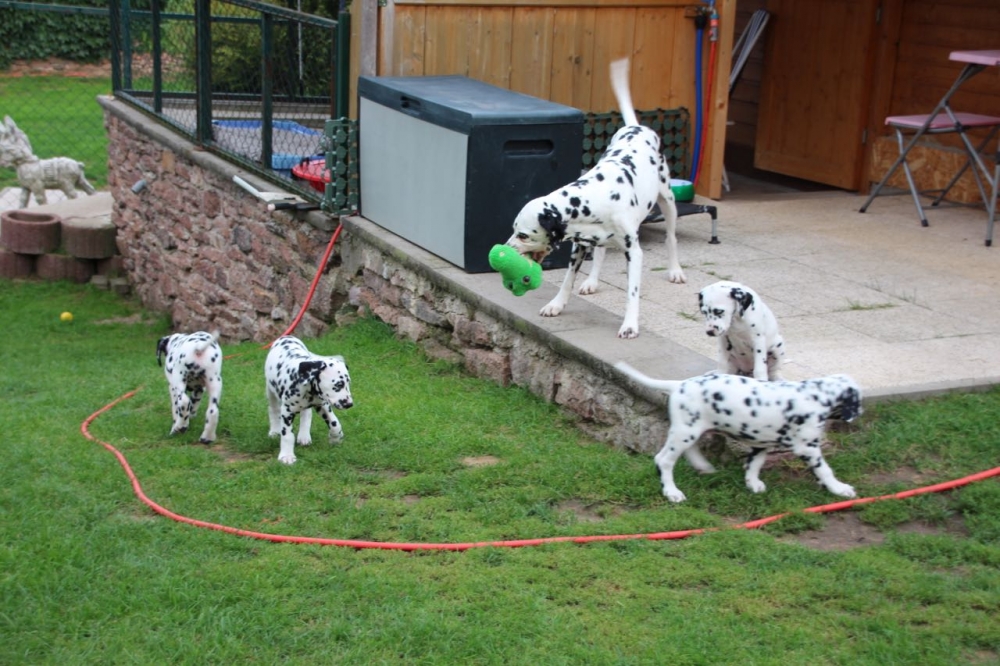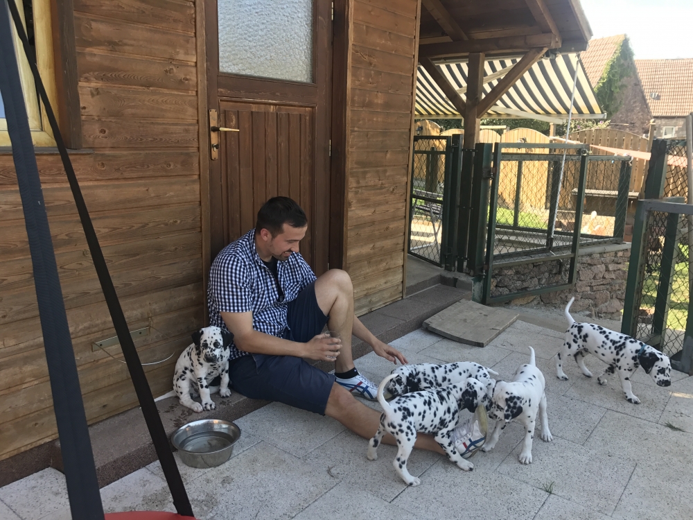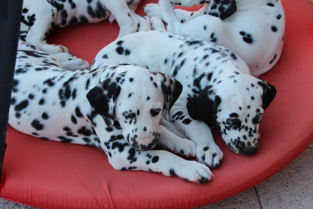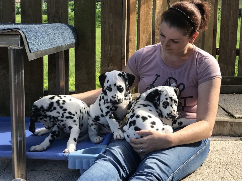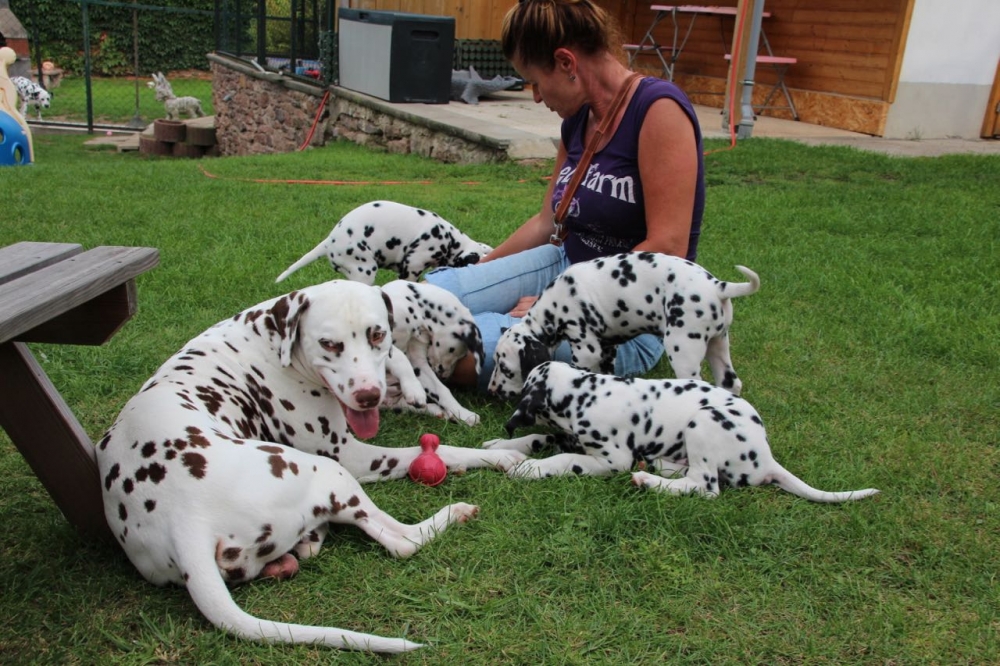 Besuch ist oft da, ob groß, ob klein, Dalmatiner oder andere Hunde, die erste Autofahrt haben alle bereits hinter sich. Die ersten Spaziergänge folgen…