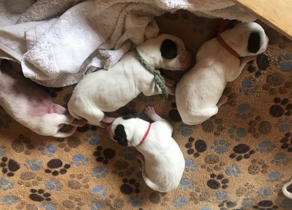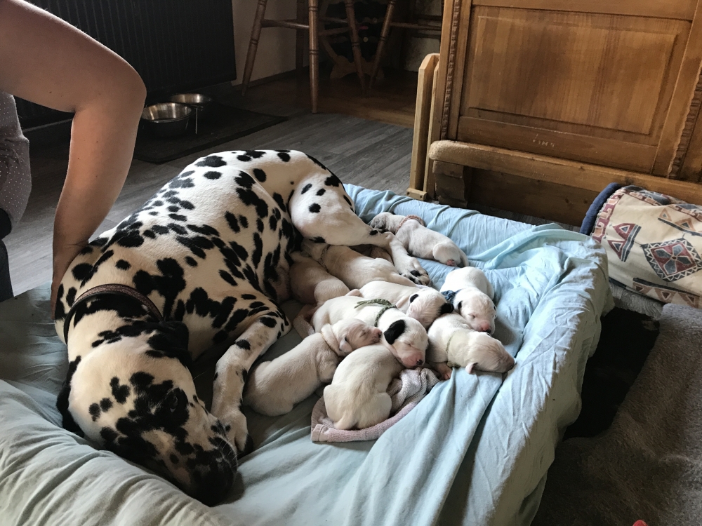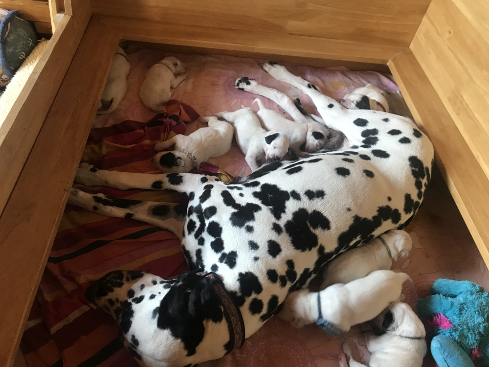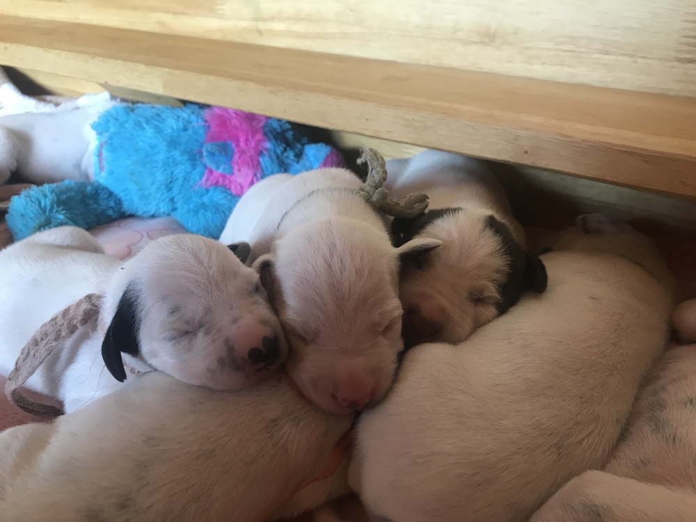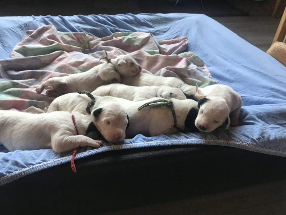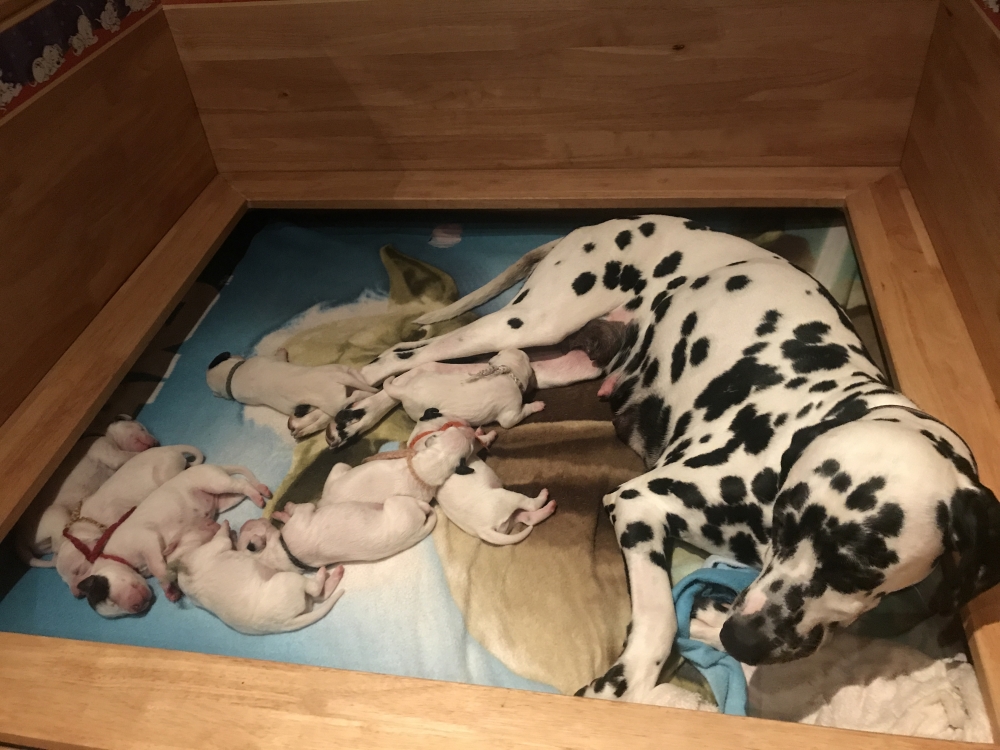 Durch die Wurfkiste robben die Zwerge schon recht schnell und auch über Mama 🙂