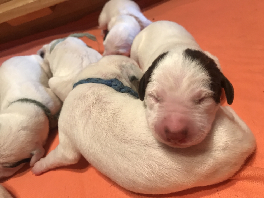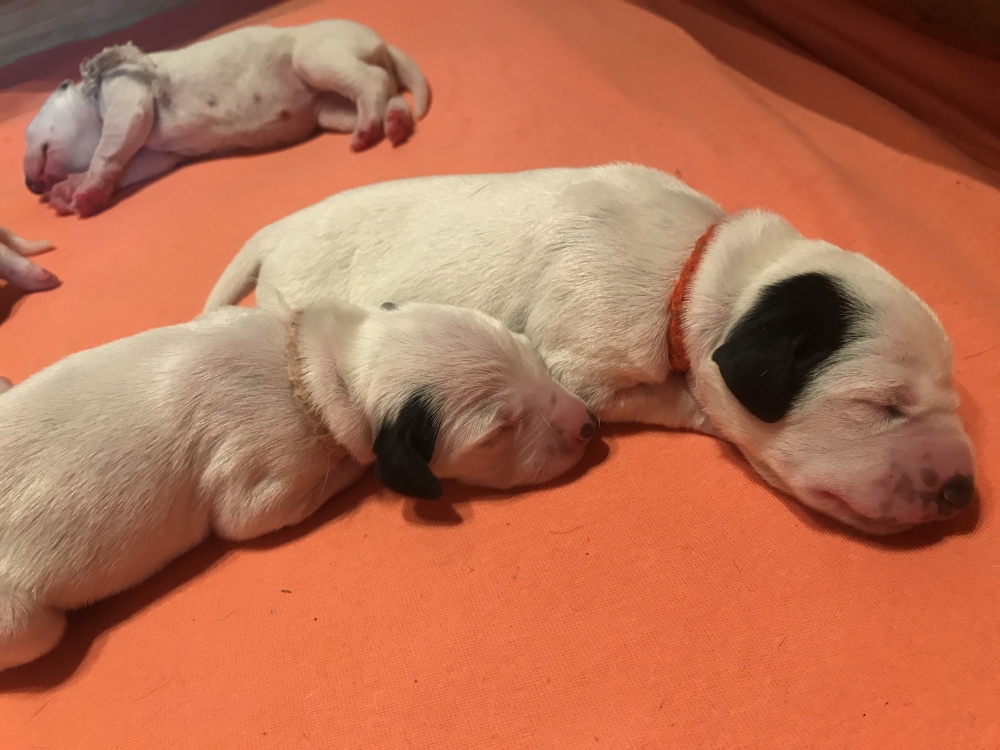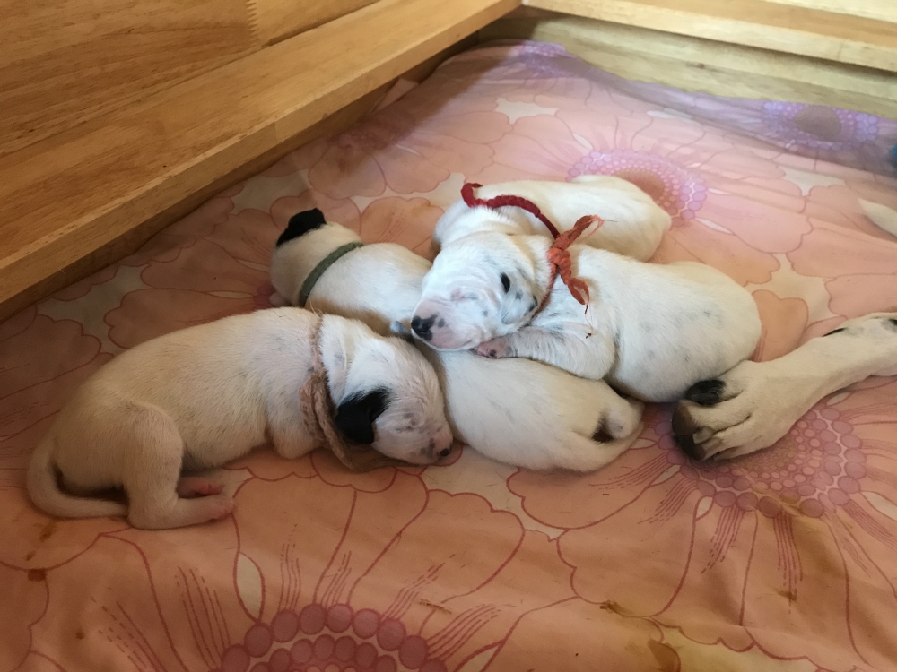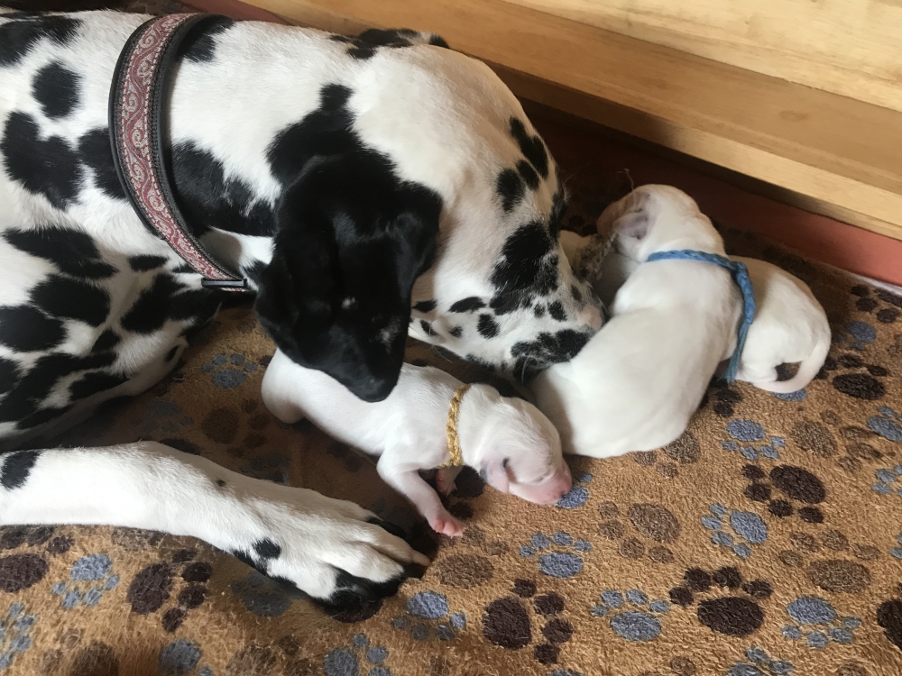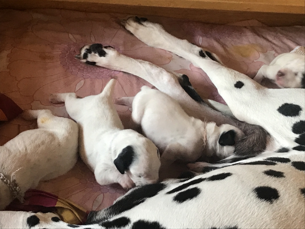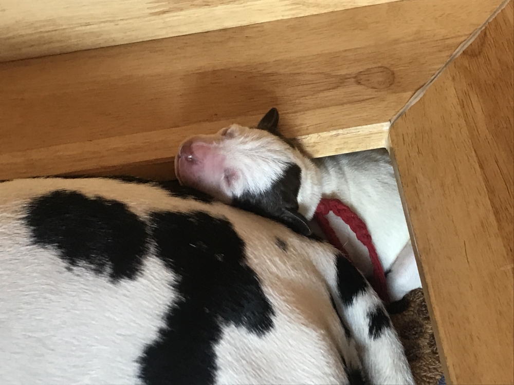 Durch die Wurfkiste robben die Zwerge schon recht schnell und auch über Mama 🙂
