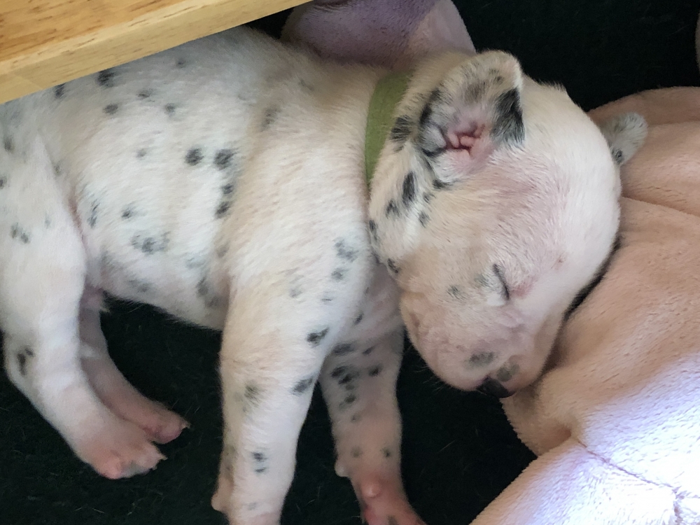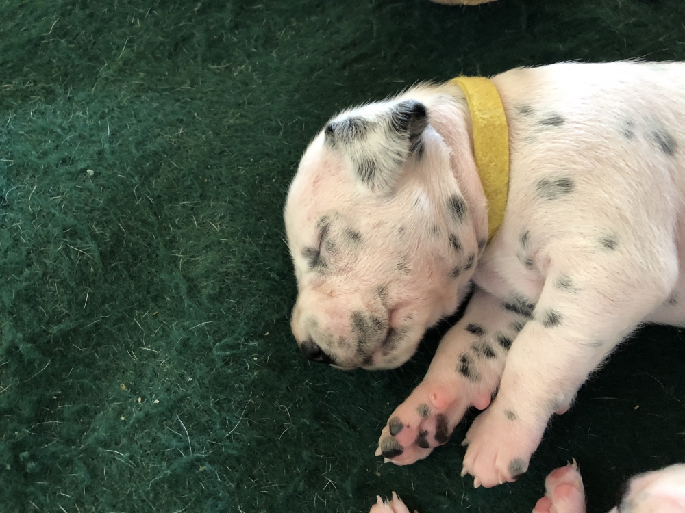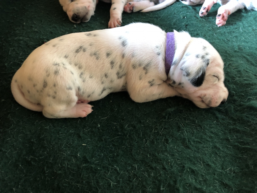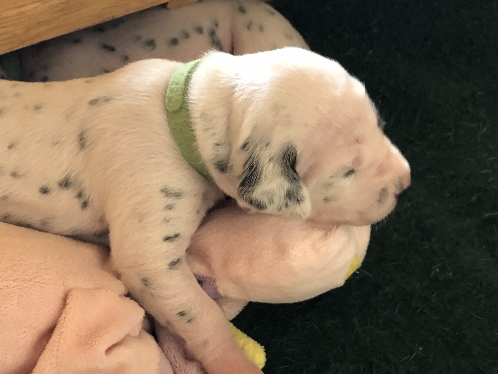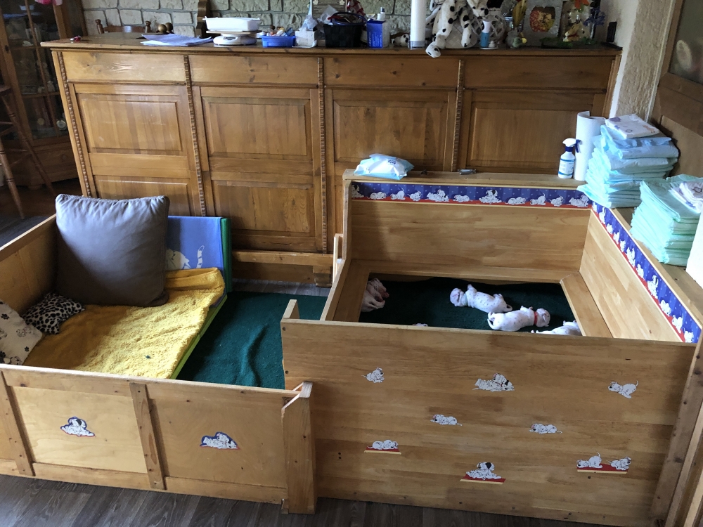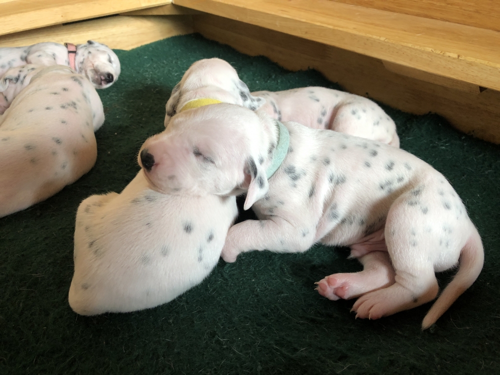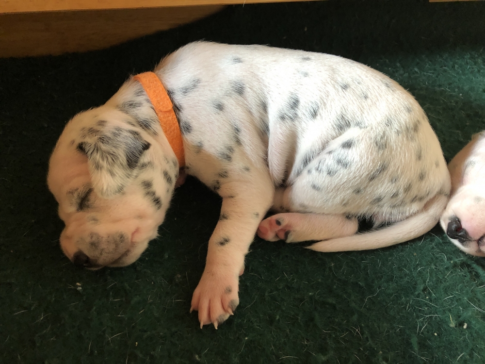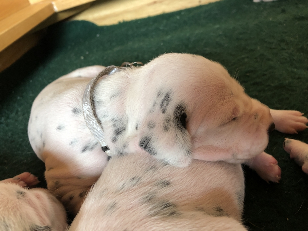 Auch wenn die Welpen die meiste Zeit noch geschlafen, kommt so langsam Bewegung rein. An der Milchbar bei Mia wird es auch schon eng, da die Zwerge ganz schön gewachsen sind.