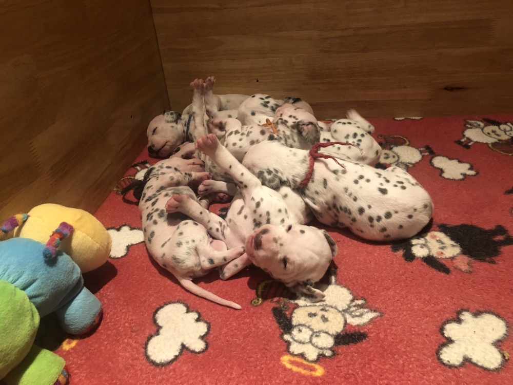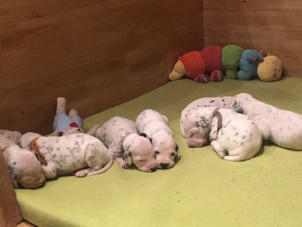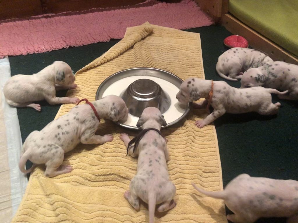 Drei Wochen sind die 7 Zwerge jetzt, die Augen und Ohren sind auf und sie fangen an durch die Wurfkiste zu laufen und auch ihr Geschäft schon außerhalb zu verrichten.