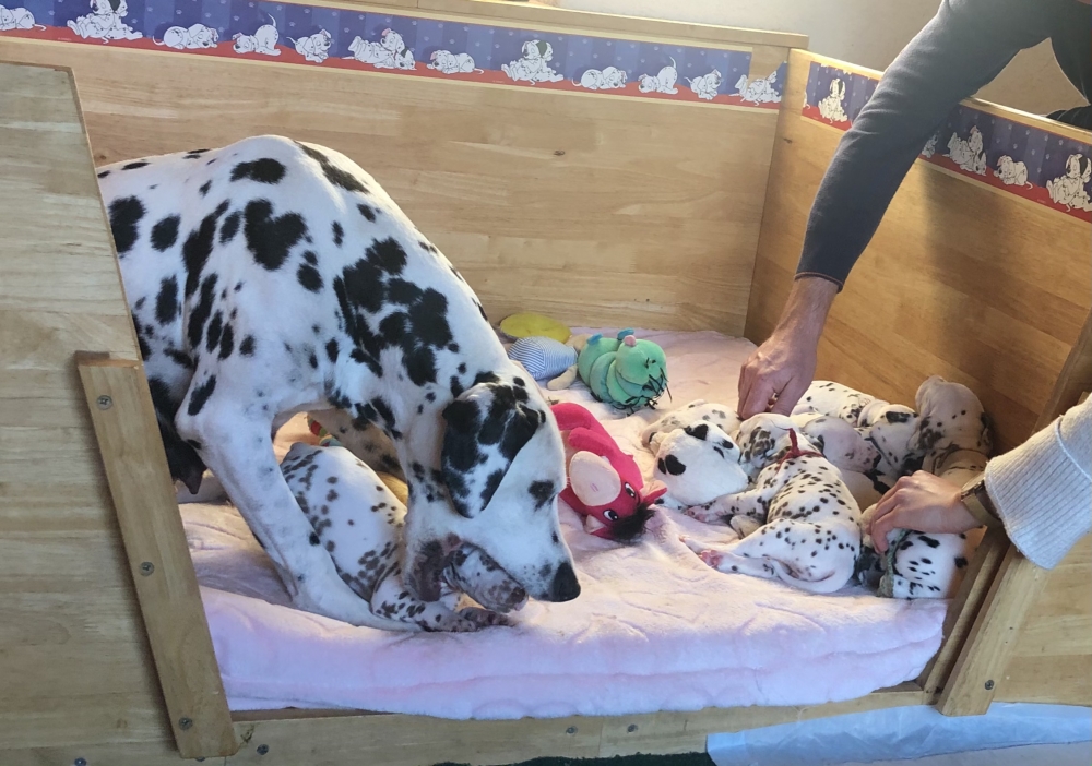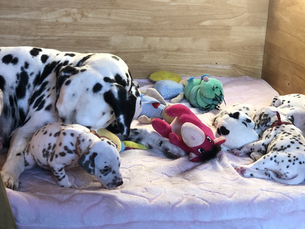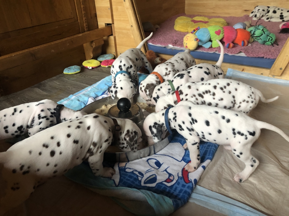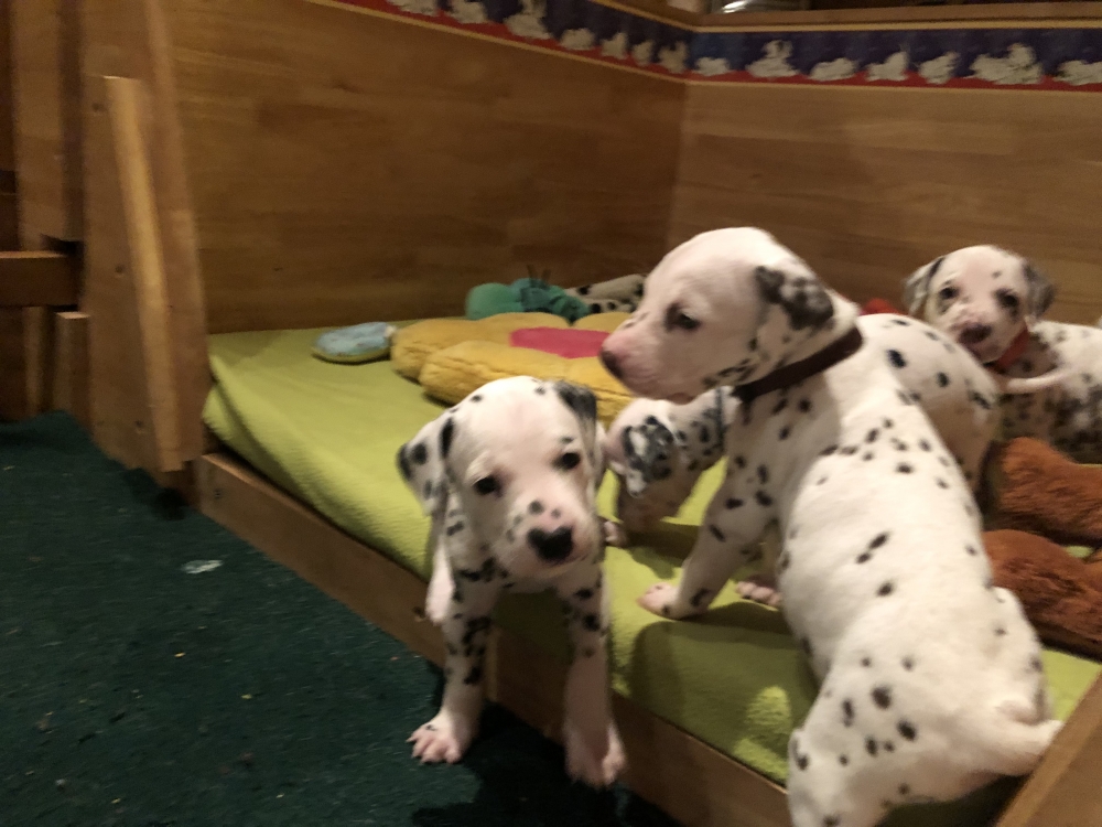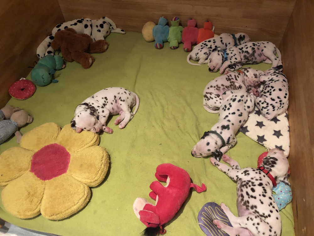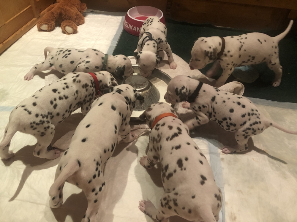 Besuch..Besuch.. so in etwa hieß es bisher immer nach der 4. Woche. Nun sind die Welpen seit heute 5 Wochen alt. Auch wenn ganz viele zukünftige Welpen Eltern am liebsten jede Woche ihr neues Familienmitglied life beim wachsen zuschauen würden, erlaubt es die Zeit leider gerade nicht. Vereinzelt Besuche gab es, ersatzweise aber fast täglich Bilder und Videos.