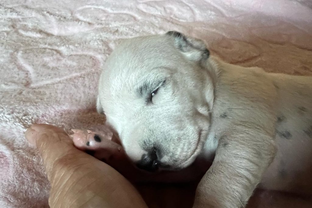 Deshalb hat er bereits am 7. Tag sein Geburtsgewicht verdoppelt und wiegt jetzt 730 g. Mit 13 Tagen haben sich die Augen geöffnet und uns schauen kleine schwarze Knöpfchen an. Übrigens nach 14 Tagen bringt er schon 1250 g auf die Waage und die erste Maniküre musste er auch über sich ergehen lassen. die Krallen werden einmal die Woche geschnitten, damit sie nicht das Gesäuge der Mama zerkratzen.